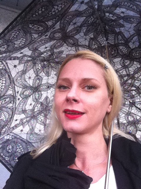 No matter how much I tried to smile, I couldn't motivate Sophie to sing & dance with me in the rain :o(